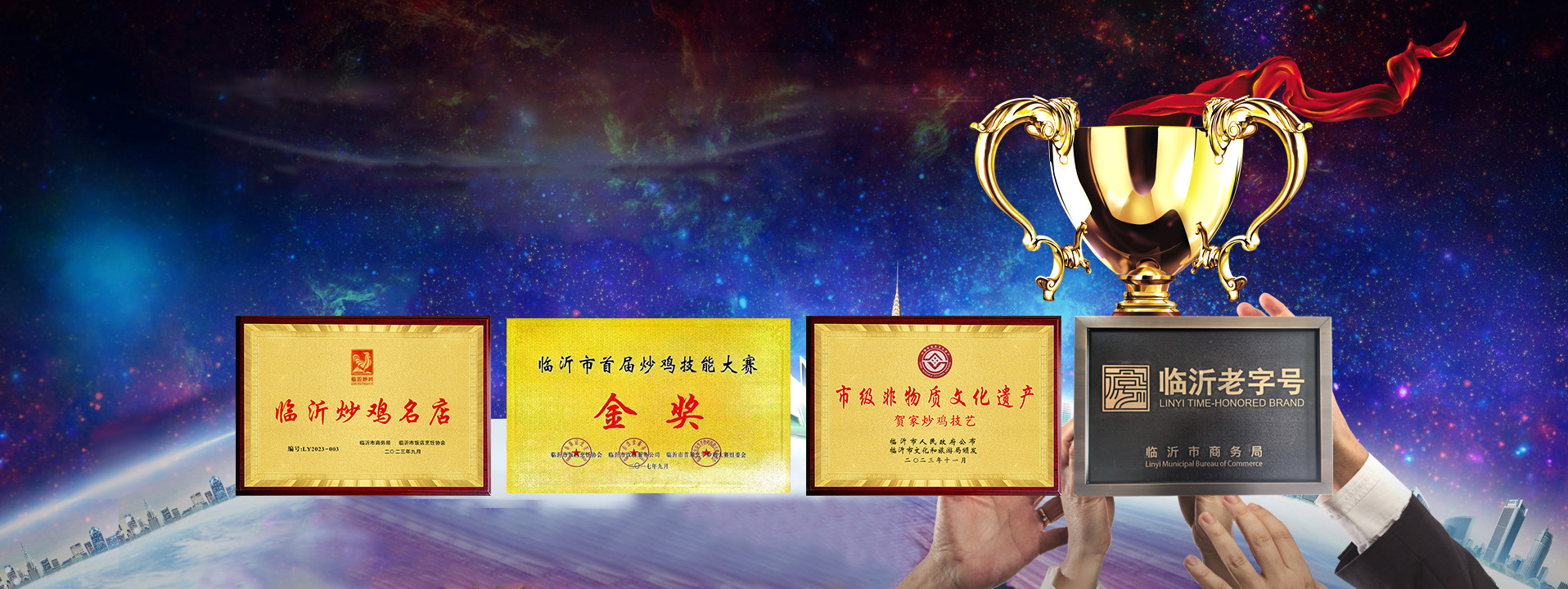 《临沂老字号》《临沂市非物质文化遗产》《临沂市炒鸡大赛金奖》《临沂市特色餐饮名店》《“食安山东”餐饮服务山东示范单位》《山东省文明诚信个体工商户》等等